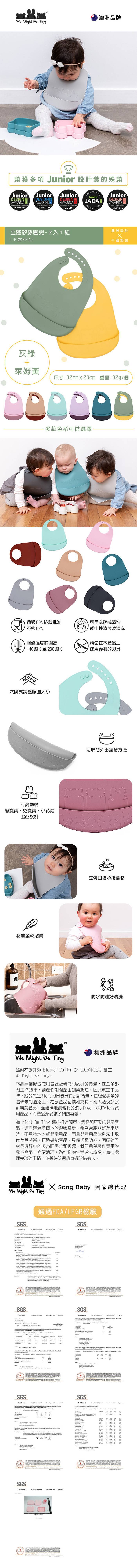 We Might Be Tiny 立體矽膠圍兜 - 灰綠 + 萊姆黃
