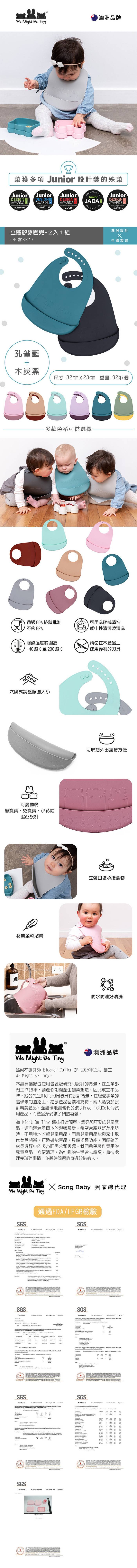 We Might Be Tiny 立體矽膠圍兜 - 孔雀藍 + 木炭黑